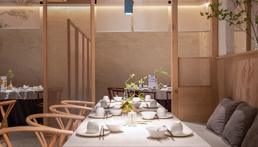 案例说明:本案为思味堂意境川菜装修设计案例。客户经朋友介绍了解到益昌装饰集团,来公司与设计师会面后详细说明了自己的想法和意愿:要做精品川菜馆,但不喜欢大多数川菜馆使用的传统中式风格,希望在设计上可以有所创新。设计师于是提取到“中式、新颖、时尚、实用、打破常规”等关键词,将中式风格与现代风格融合,设计出清新而不失中式韵味的餐饮空间,让客户收获了意料之外的惊喜。